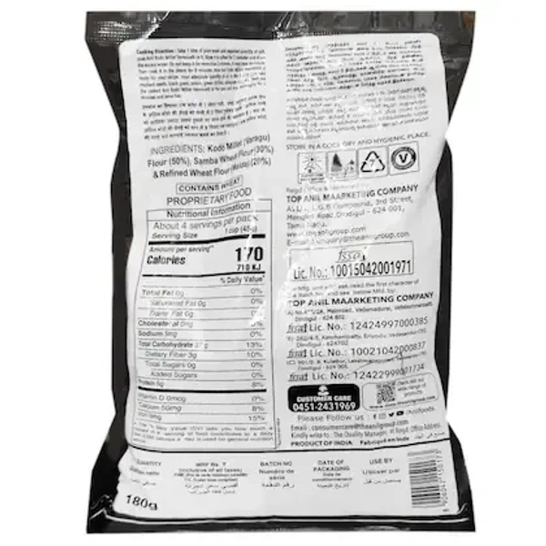 Welcome to Shree Valli Supermarket, your trusted destination for healthy and delicious food options. Elevate your meals with Anil Kodo Millet Vermicelli (180g), a nutritious and versatile choice for those who value both taste and health. Perfect for crafting quick, flavorful, and guilt-free dishes, this millet-based vermicelli is ideal for busy mornings, light lunches, or satisfying dinners.