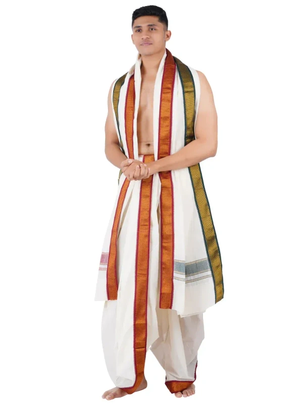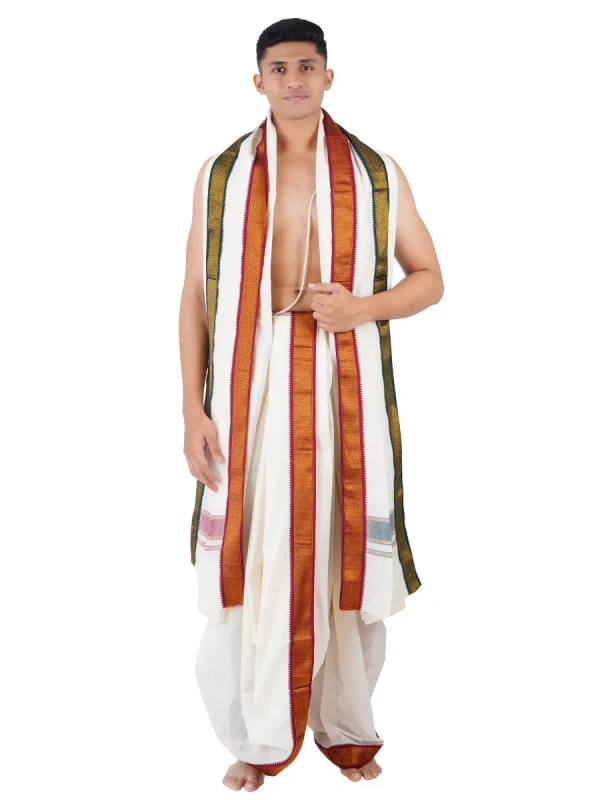 Experience Elegance with Ramraj Acharya Khan Jari Pet Dhoti (9+5) from Shree Valli Supermarket