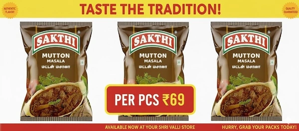 Whether you're hosting a family dinner or planning a festive feast, Sakthi Mutton Masala will be your secret ingredient to make every meal unforgettable. Experience the magic of authentic Indian cooking with every spoonful!