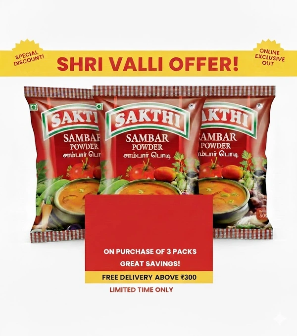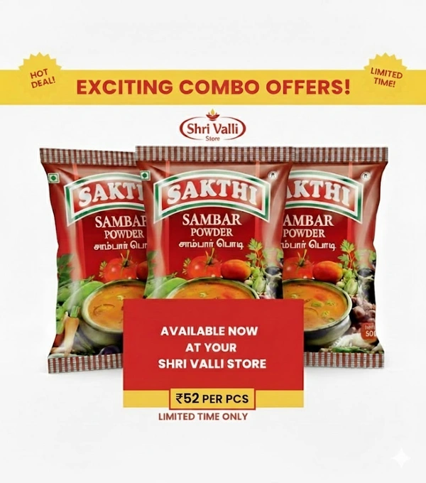 Don't wait! Visit Shree Valli Supermarket today and bring home the magic of Sakthi Sambar Powder.